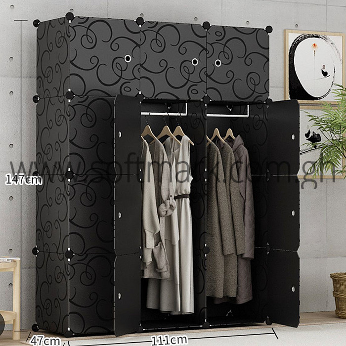 12 Cubes Plastic Wardrobe With Shoe Rack - Black
